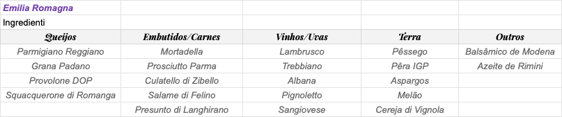 Os italianos são muuito "regionalistas". Os pratos e/ou os ingredientes de uma certa região serão muuito difíceis de encontrar em outros lugares, com a mesma qualidade.