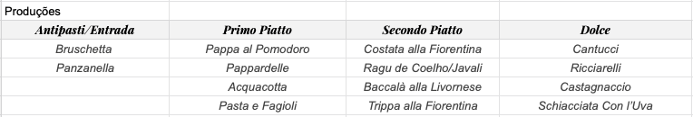 Deu para aproveitar cada minuto do almoço, comemos a sua famosa Bistecca Alla Fiorentina, Manteiga de Chianti, o Chianti Sushi e entre outros!